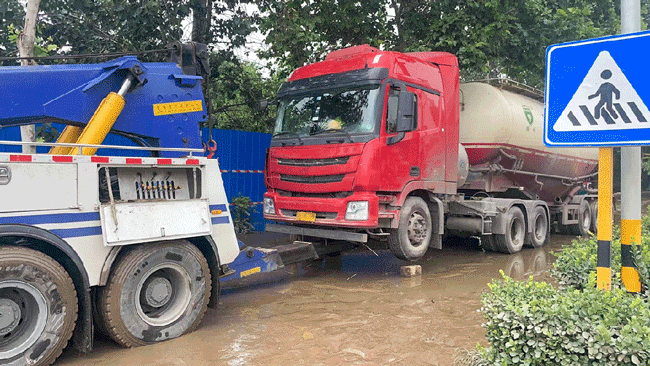 濰柴服務工程師為抗洪搶險客車、拖車