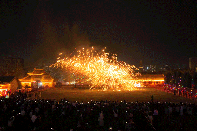 非遺鐵花驚艷亮相,手藝人揮灑滾燙鐵水,化作漫天星火,“人火共舞”的震撼場面,恰如濰柴奔騰不息的動力,璀璨光影下,員工與家屬并肩觀賞,定格溫馨瞬間。